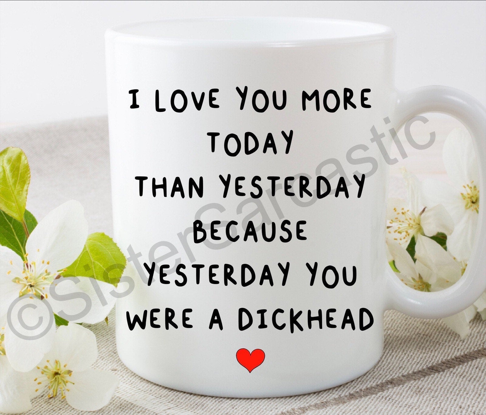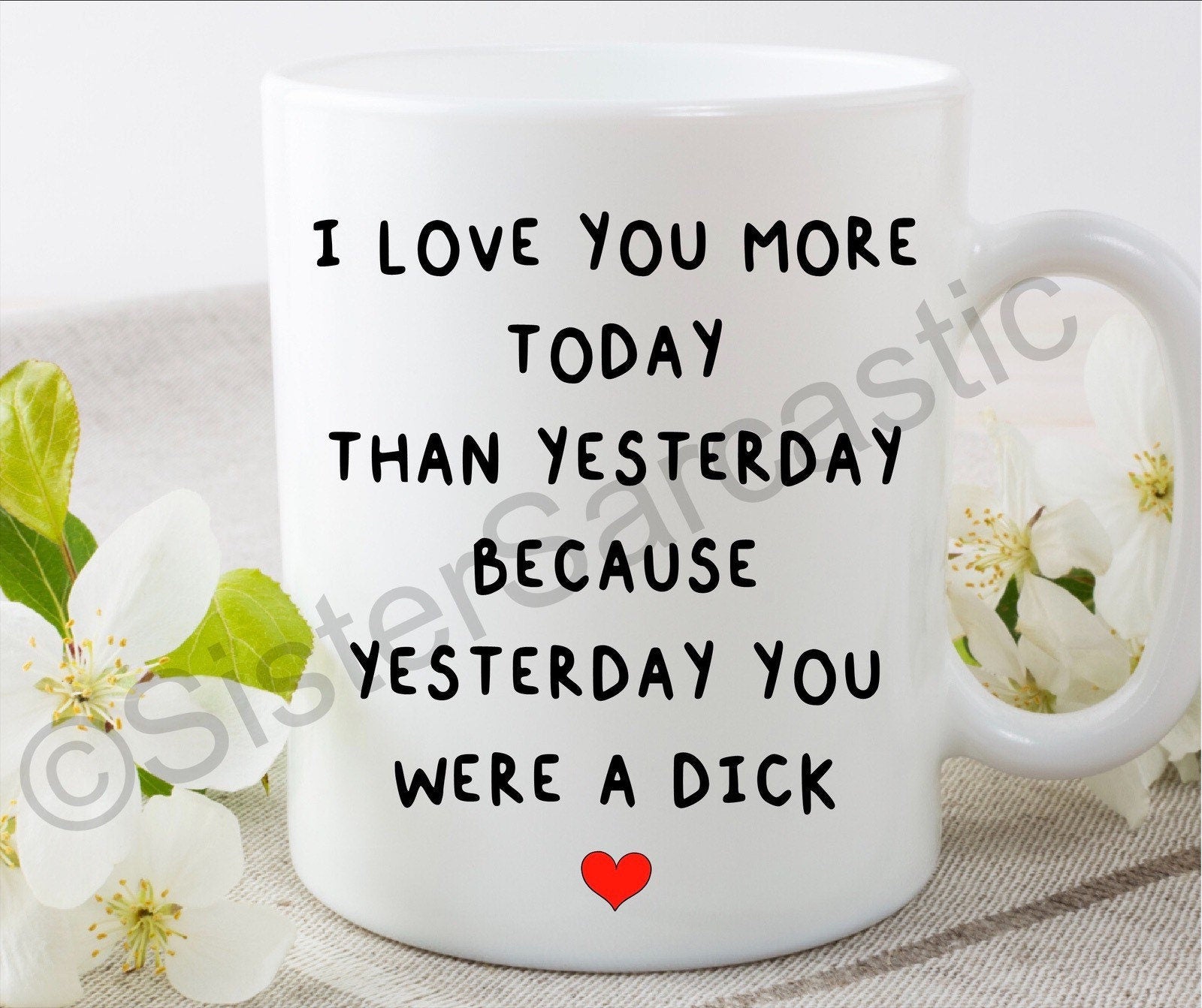 I love you more today than yesterday rude funny 11oz white mug cup perfect present for boyfriend girlfriend partner birthday Valentine’s Day