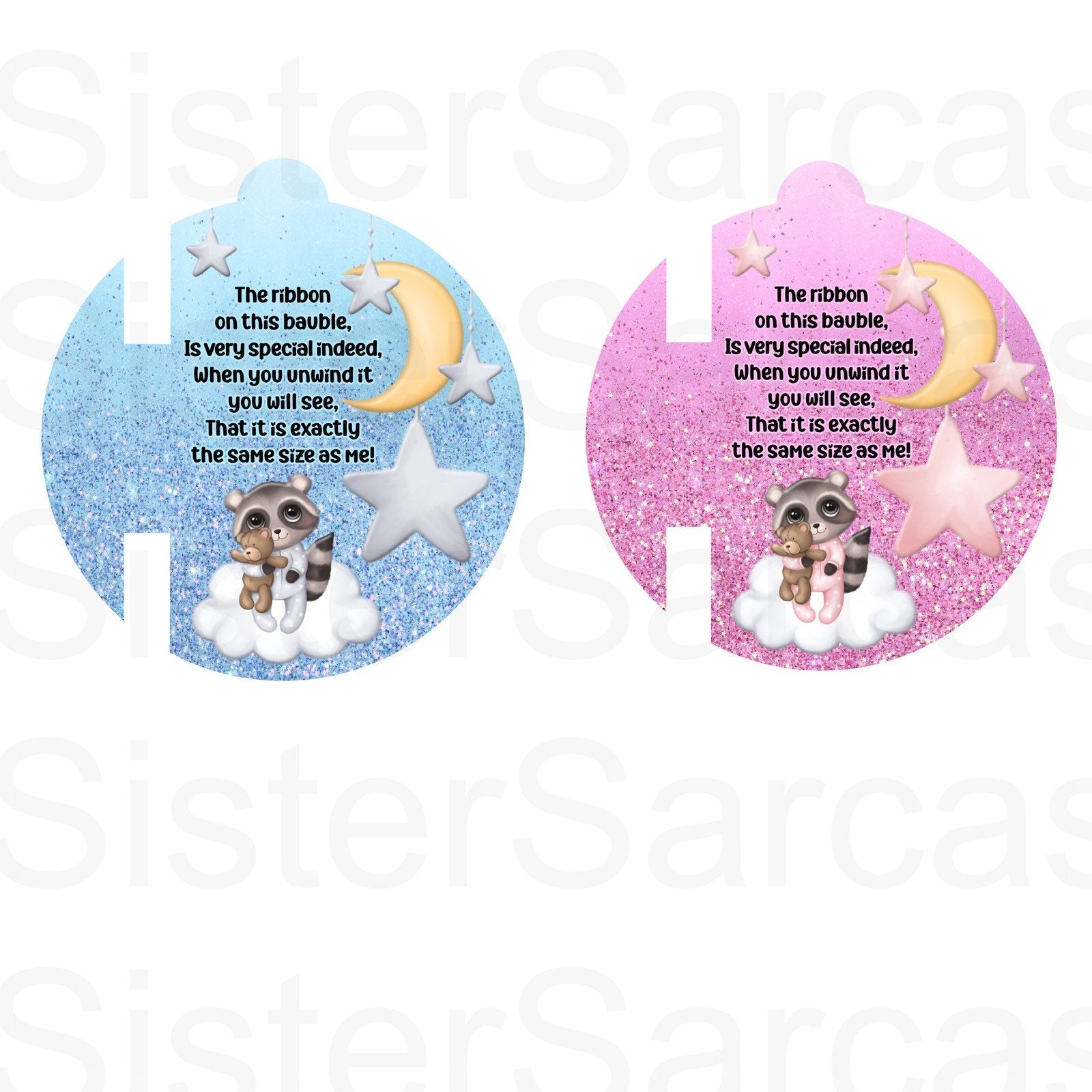 Girls will come with pink ribbon and boys will come with blue ribbon. I will send a length of ribbon for you to cut to size yourself.