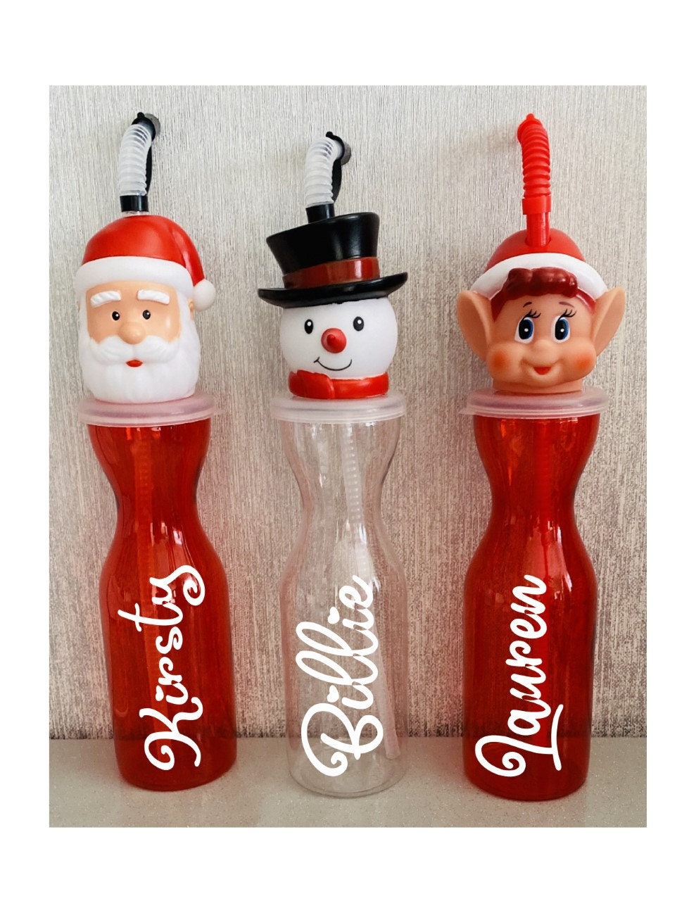 Personalised Kids Christmas Drinking Bottle Santa Elf Snowman Gift Present Stocking Filler Christmas Eve Box Present For Him Gift For Her