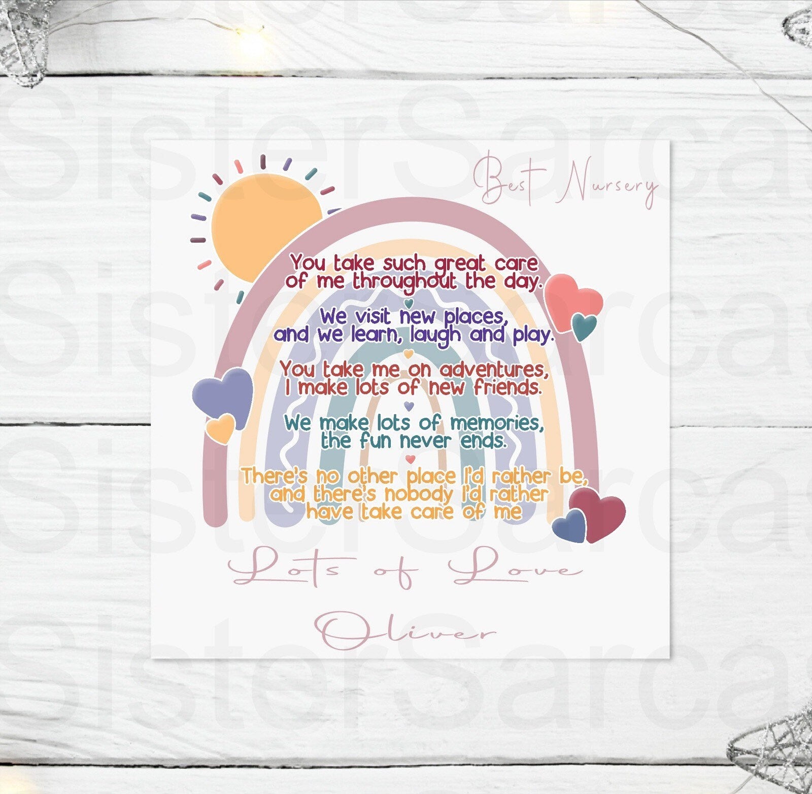 Personalised Nursery Teacher Thank You Card Preschool Teacher End of Year Greeting Card Keepsake
